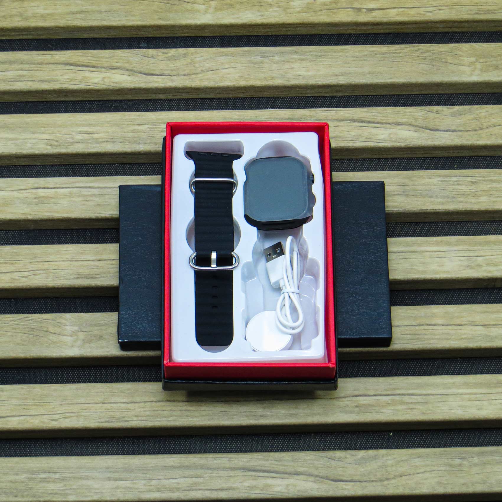این ساعت یه اپلیکیشن اختصاصی داره که با اون میتونید به گوشی متصل بشید و از امکاناتش استفاده کنید. راهنمای اتصال به برنامه رو توی همین سایت میتونید ببینید. این ساعت مجهز به اسپیکر و میکروفون داخلیه و با اتصال اون به موبایل، علاوه بر مکالمه میتونید به موسیقی مورد علاقهتون گوش کنید. هر سه دکمه این مدل یعنی هم دکمه اصلی، هم دکمه اسپورت و هم مجیک باتن (دکمه چرخشی) برای تغییر صفحات و بزرگنمایی و کوچکنمایی فعاله. روشن شدن صفحه با حرکت دست به سمت بالا، فرمان صوتی، پشتیبانی از زبان فارسی در منو و پیامها و… از قابلیت های دیگه این مدله. نحوه اتصال به گوشی هم بسیار راحته (کارت راهنما داخل پک قرار دارد). به طور خلاصه اگه بین این همه مدل ساعت طرح اپل، دنبال یه ساعت با قیمت کم ولی کیفیت مناسب و طراحی دقیقا مشابه اپل سری اولترا، میگردید حتما به Smart watch Ultra 2 فکر کنید.